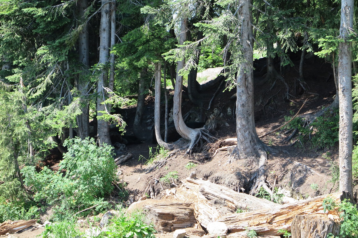 There are two Grisely bears here as well, but we didn’t get a chance to see them as they were napping in the shadow back under the trees. see if you can find them in this photo.